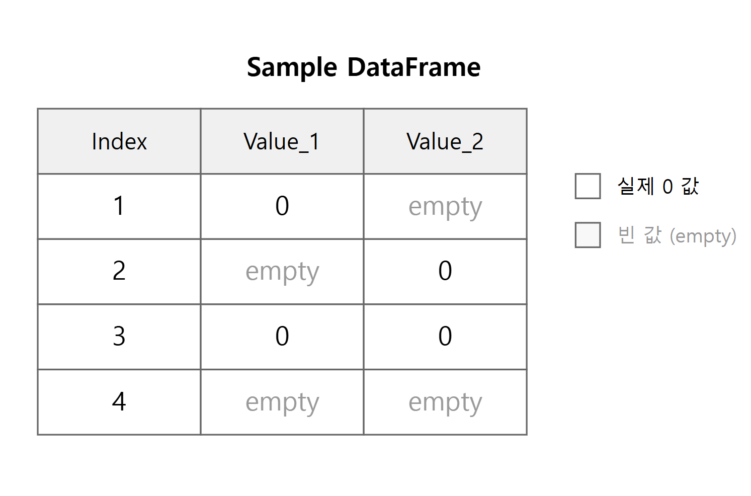 특정 column 이 numeric 이라고 판단되면 그 column 안에서의 값이 아예 없더라도 그건 자동으로 0 으로 된다. 따라서 사용자가 육안으로 보기에 분명히 cell 안에 0이라는 integer 가 들어있고 빈 칸이 섞여 있고 우리 눈에는 그 둘이 확연히 다르게 보여도, python 이 받아들이기로는 둘이 똑같이 받아들여진다는 것이다.